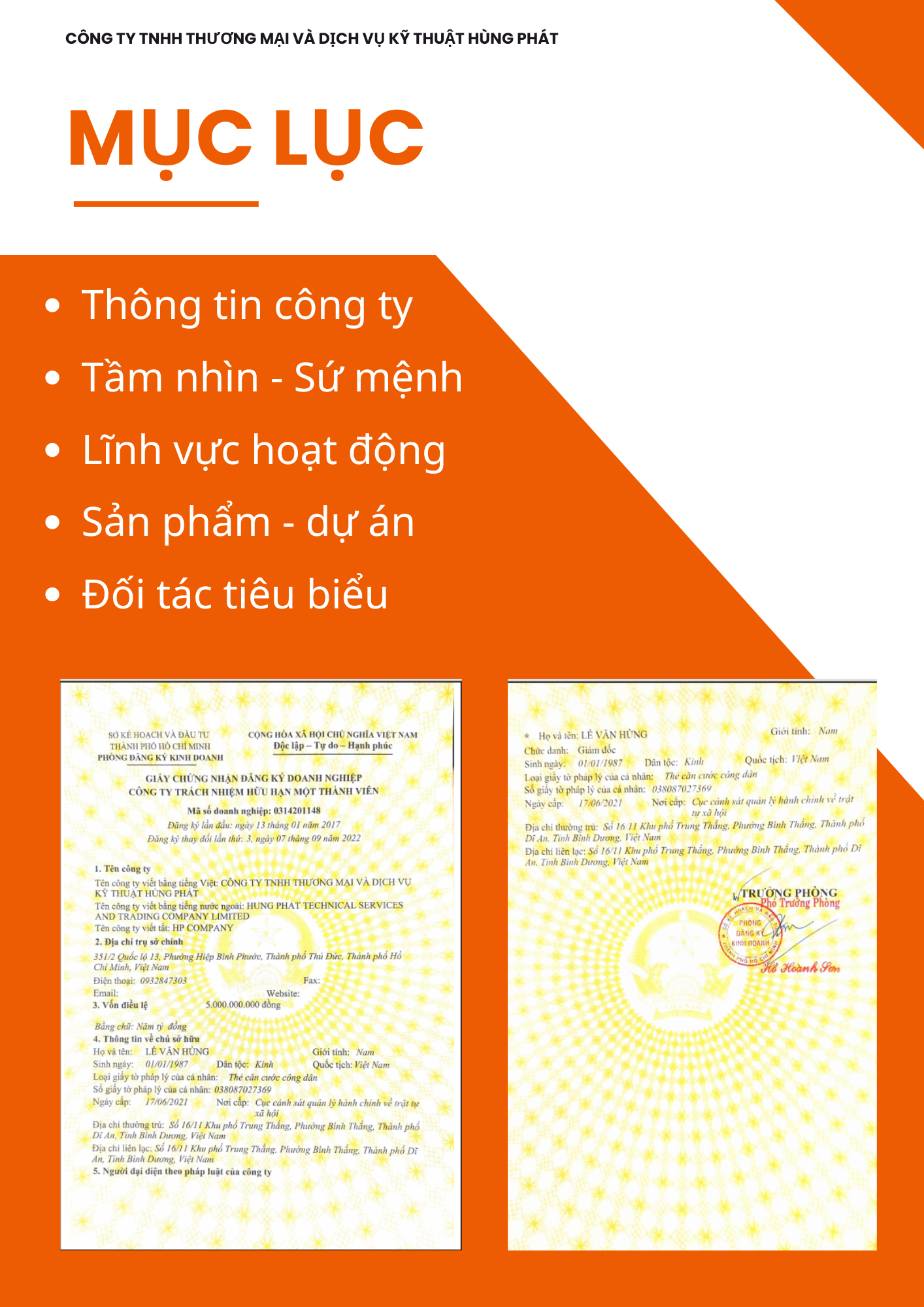 - CÔNG TY TNHH THƯƠNG MẠI VÀ DỊCH VỤ KỸ THUẬT HÙNG PHÁT - GPKD số 0314201148 cấp ngày 07/09/2022 tại Sở Kế hoạch và Đầu tư Hồ Chí Minh